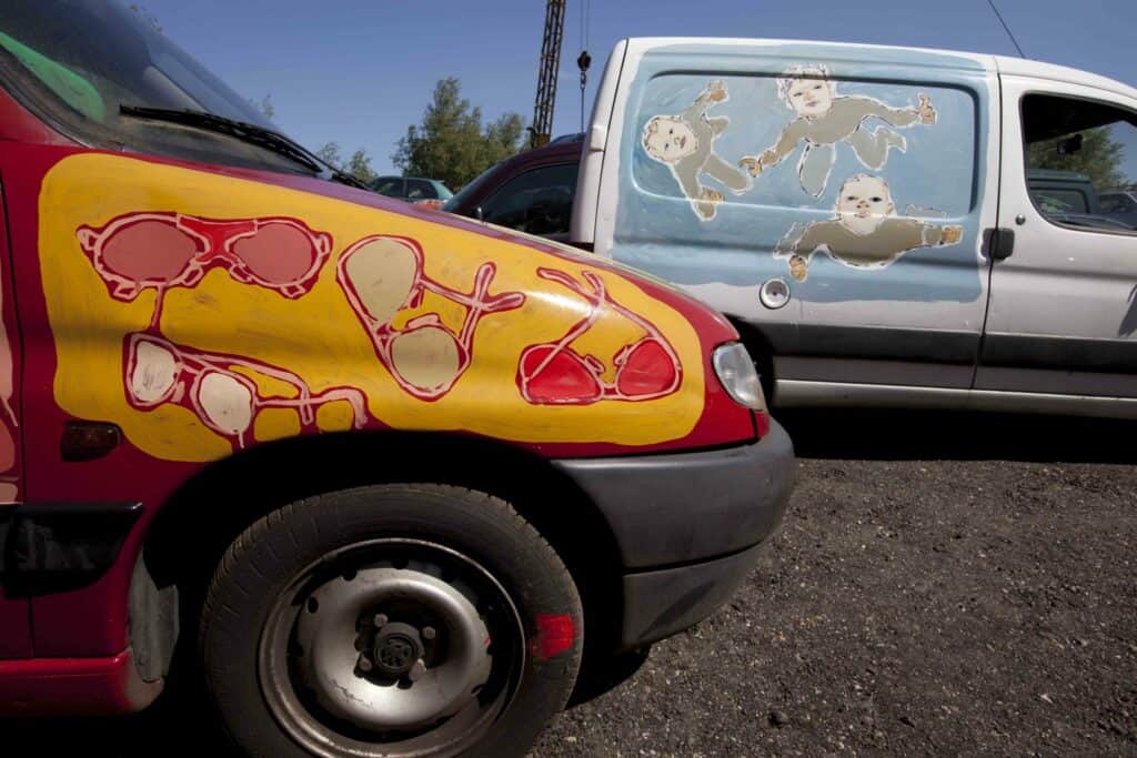 In de zomer van 2011 heb ik een expositie gemaakt op de autosloop tussen Ouderkerk aan de Amstel en Amsterdam. Maandenlang elke dag van 7:30 tot 18:00 beschilderde ik sloopauto’s die opgestapeld stonden te wachten om ze samen op slechts één dag te tonen aan het publiek.