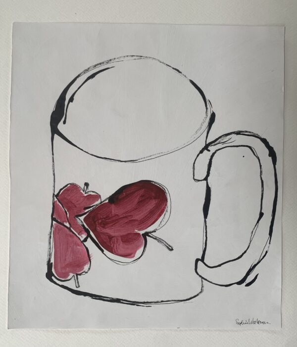 Tekening met inkt op acryl op papier. 28 x 24 cm, zonder lijst. ...