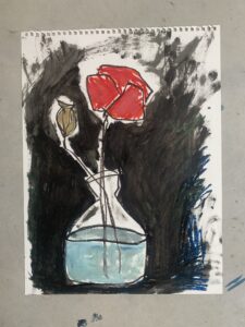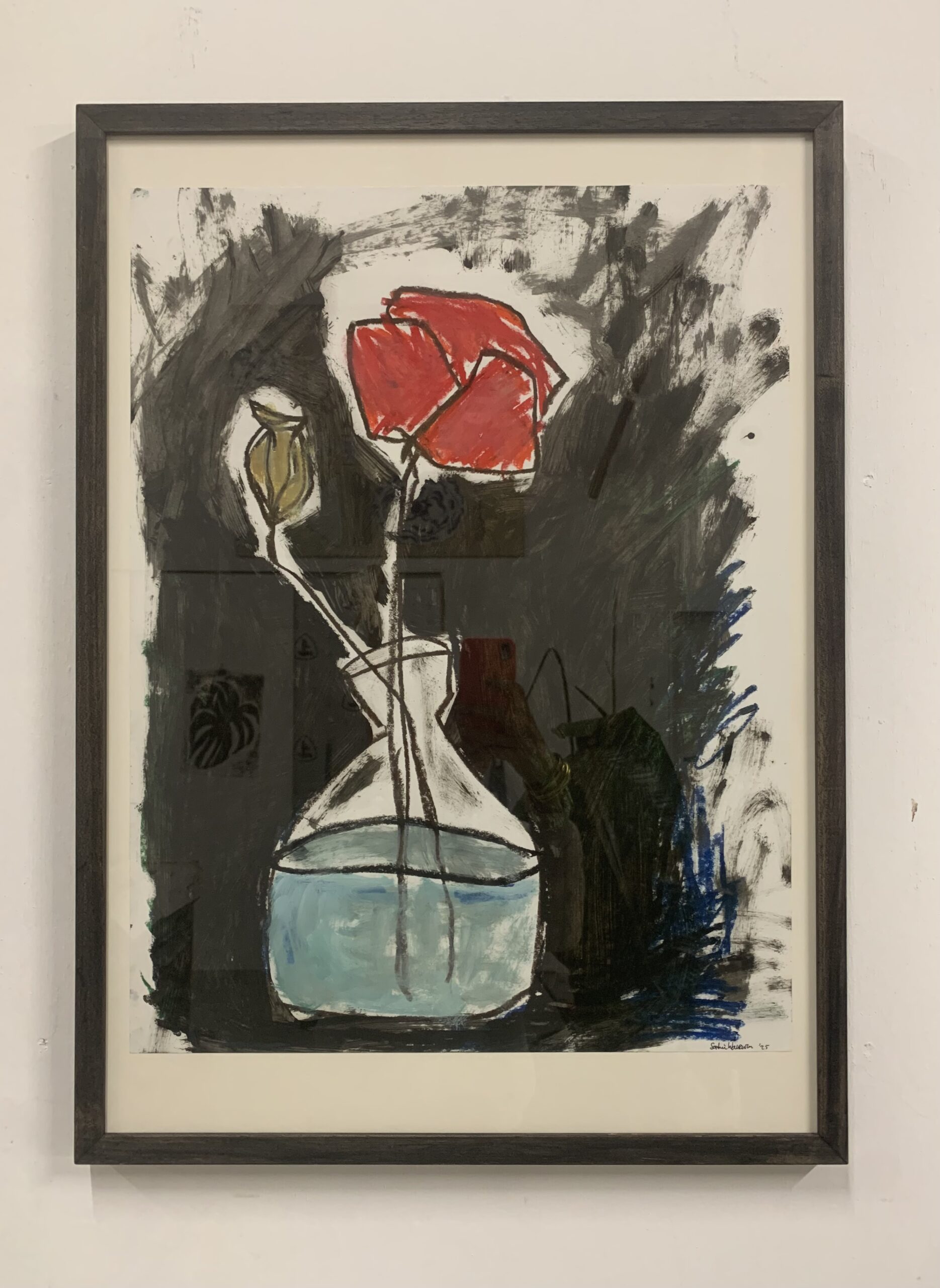 Olie op papier, 60x 45 in houten lijst met glas, 73x 53cm.