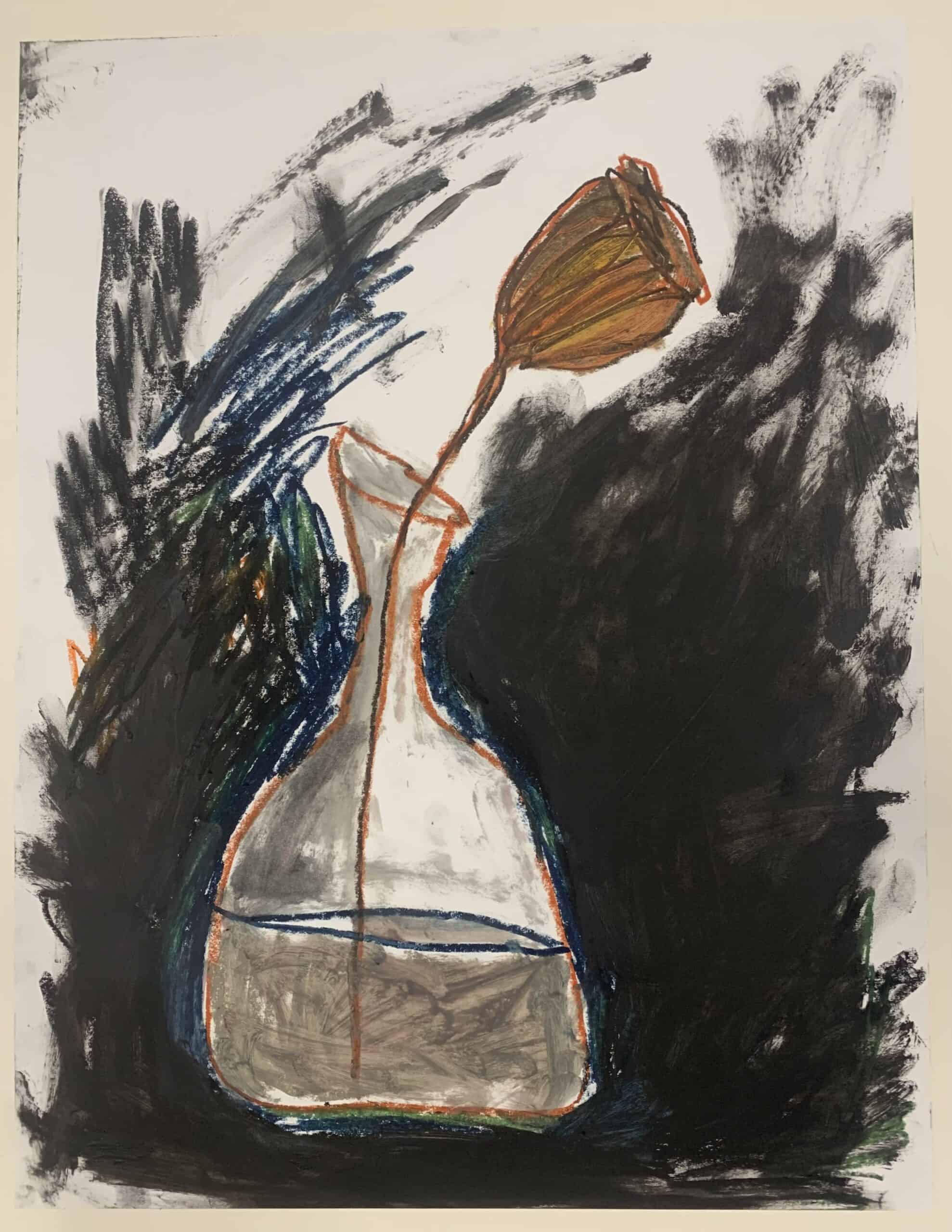 Oliepastel op papier, zonder lijst, 60x 45,5cm.