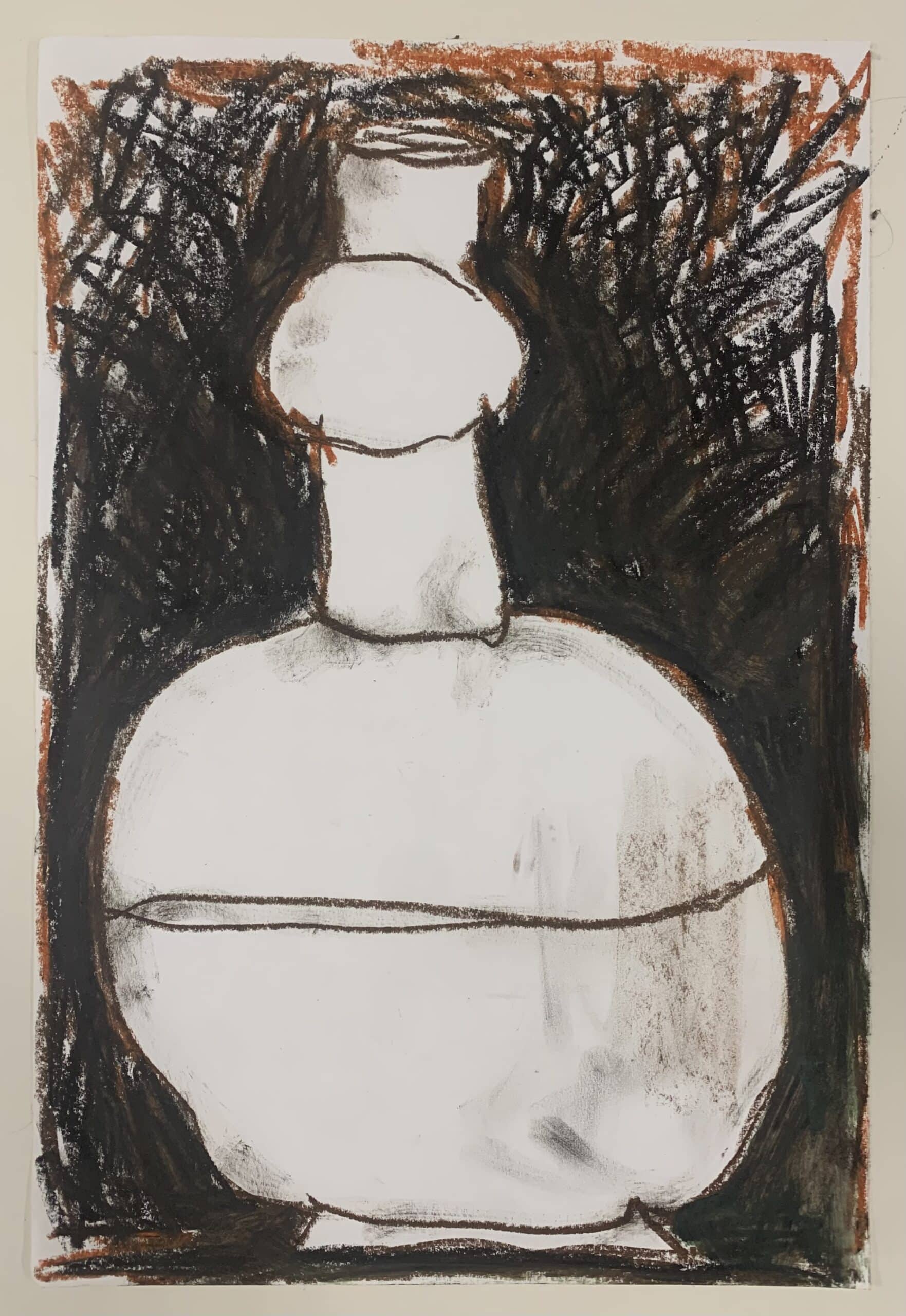 Oliepastel op papier, zonder lijst, 48x 32cm.