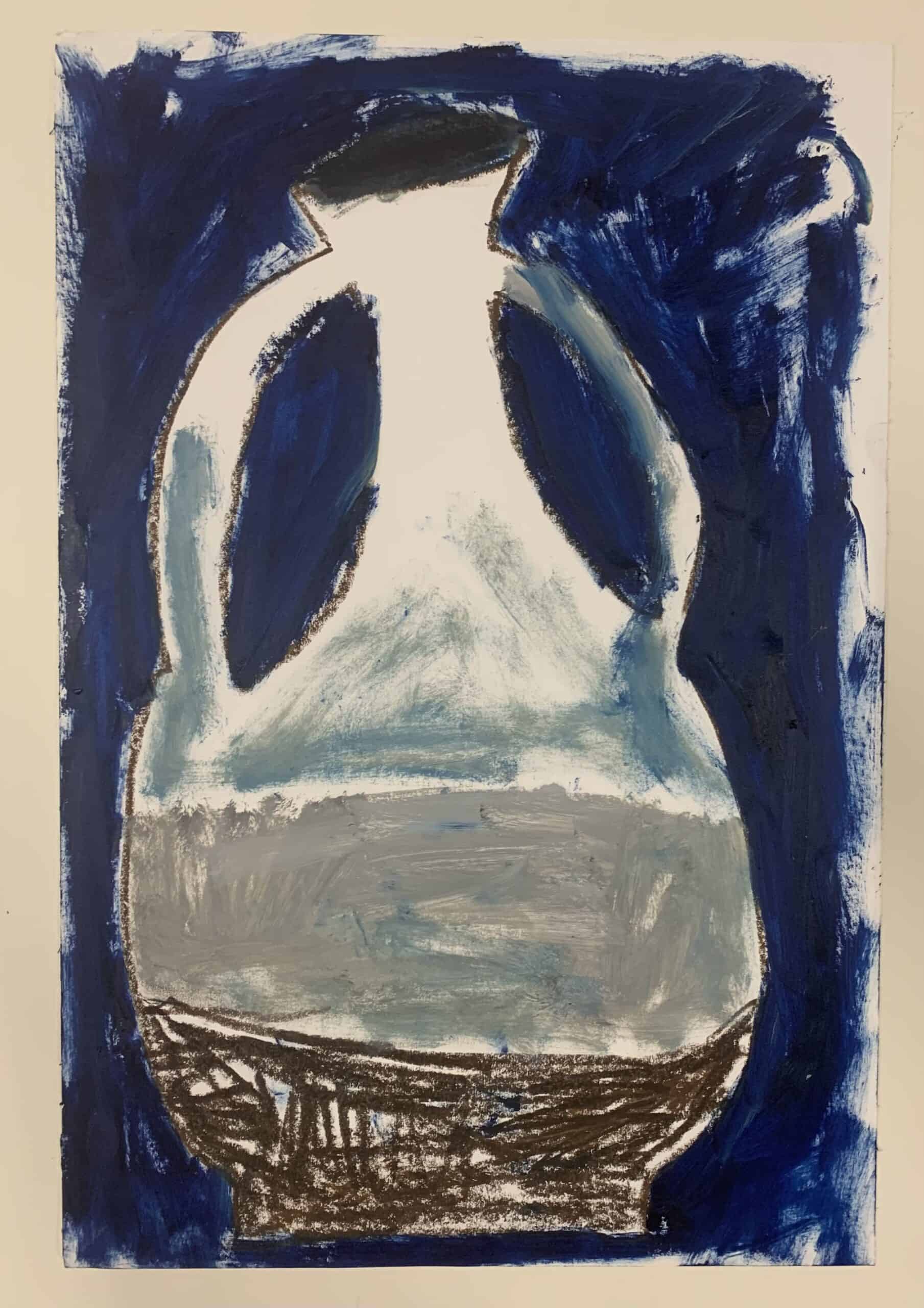 Oliepastel op papier, zonder lijst, 48x 32cm.