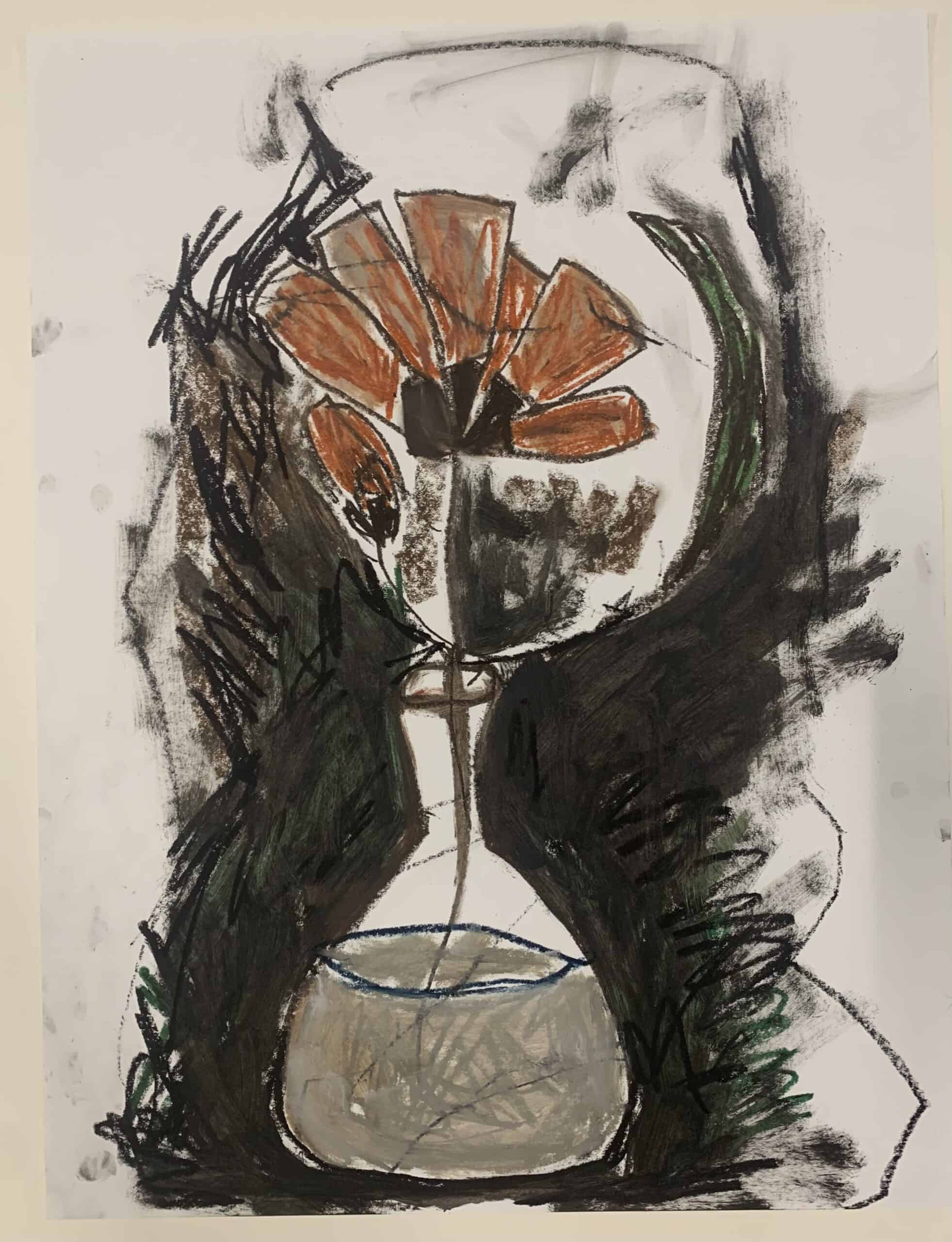 Oliepastel op papier, zonder lijst, 60x 45,5cm.